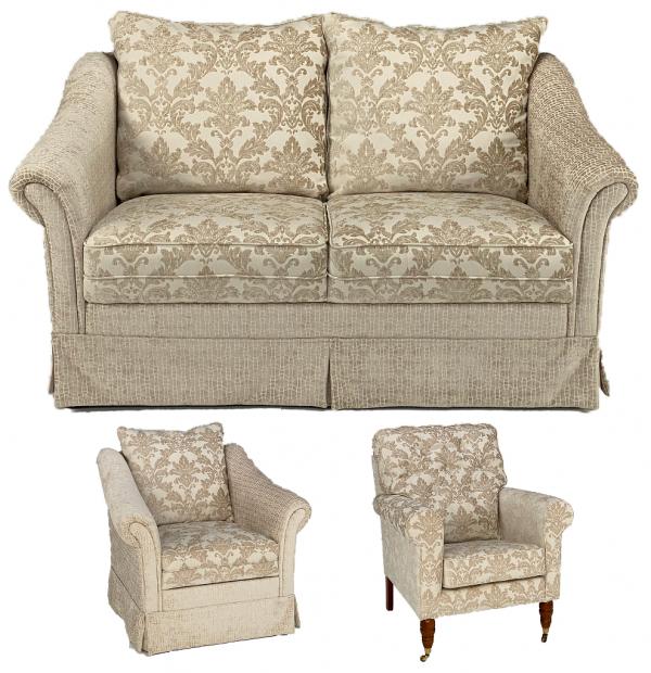 | Omschrijving: | Klein twee zitsbankje Oana met bijpassende fauteuils Oana en Fleur. Model Oana heeft vaste zittingen met interieur vering. De rugkussens zijn gevuld met een mix van dons en polyether vlokken voor extra comfort. De mooie damast stof is vlekwerend behandeld. De hele set mag weg voor een vriendenprijs! |