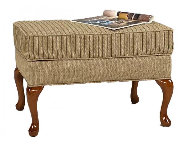 Mooie klassieke Hocker met Queen Anne pootjes in stofcombinatie Gobi/Modena beige.