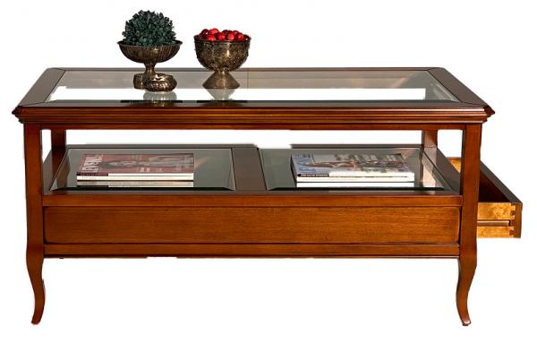 | Omschrijving: | Mooie klassieke salontafel met twee laden aan de korte kanten. Het bovenblad en de glasbladen boven de laden zijn facet geslepen. |