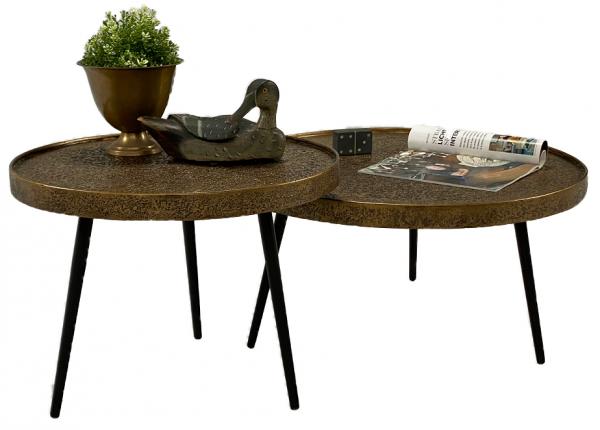 | Omschrijving: | Leuke set tafels van antiek goud met zwarte pootjes. |
