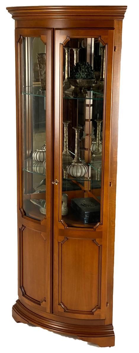 | Omschrijving: | Mooie hoekvitrine Misano is nieuw in onze showroom. De vitrine heeft twee deuren, verlichting en spiegel achterwanden. De glasleggers zijn in hoogte verstelbaar. De foto is genomen met de verlichting uit. De kast komt 53 cm. uit de hoek uw kamer in. |