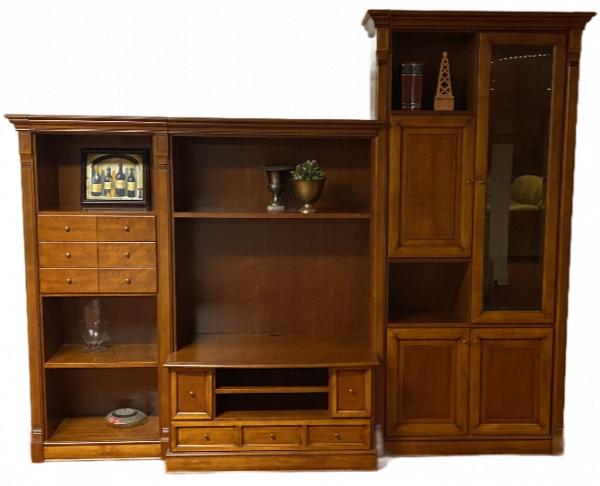 Mooie klassieke wandkast uit ons Nerissa programma uit Yecla. De kast is uitgevoerd met zes handige laden en verlichting in het vitrine gedeelte. De diepte maat van het tv-gedeelte is 63 cm. De breedte van het tv-gedeelte is 99 cm. Wij bezorgen deze wandkast zonder extra kosten, bij u thuis, voor een schijntje van de nieuwprijs.